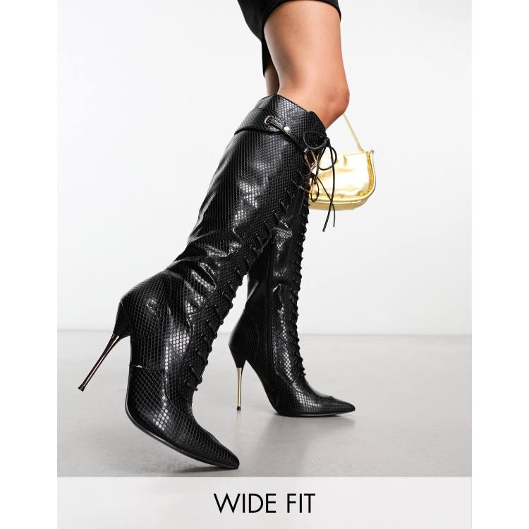 Public Desire Wide Fit Infatuated Bottes hauteur avec lacets sur le devant Noir Very well made.