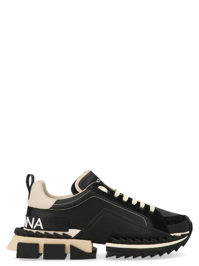 Dolce Gabbana Black And Beige Leather Super King Trainers In Very well made.