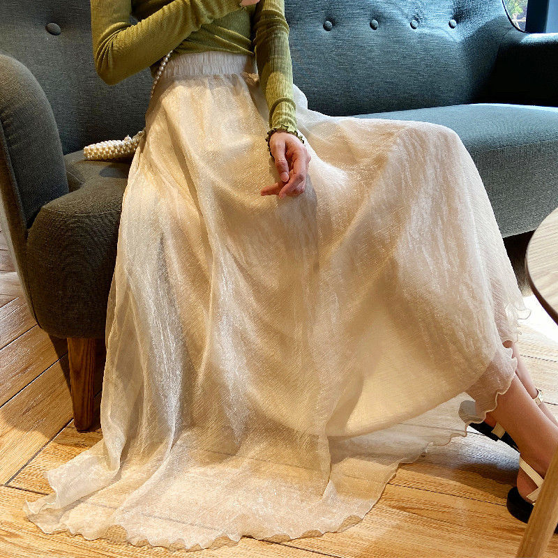 Women s Summer Maxi Skirt Yellow Double Chiffon Large Skirt Hem Very well made.