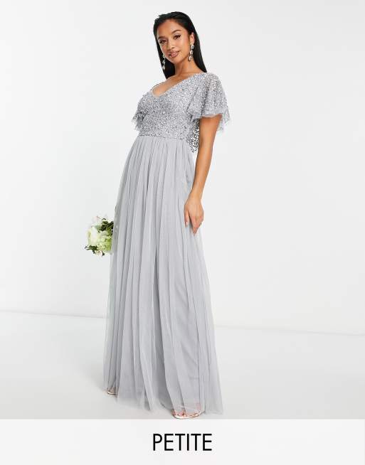 Beauut Petite Bridesmaid embellished bodice maxi dress with flutter sleeve in grey Very well made.