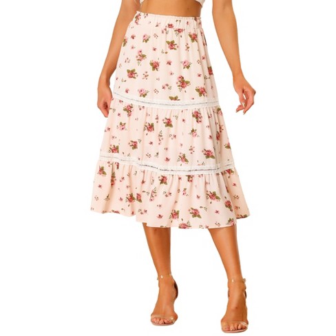Allegra K Women s Floral Midi Skirts Elastic Waist Tiered Flowy Very well made.