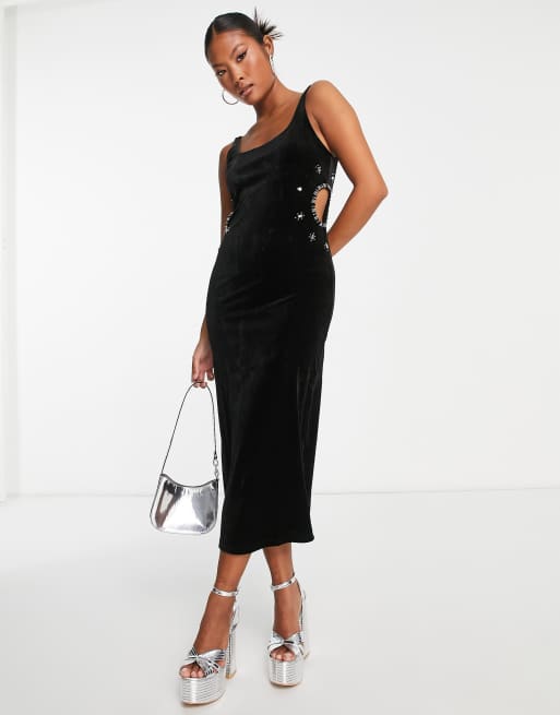 Vila Petite cut out side embellished velvet midi dress in lack Very well made.