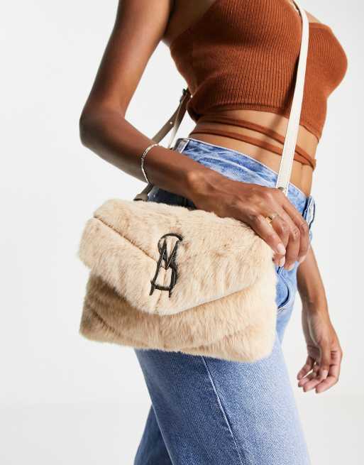 Steve Madden Btoy Petit sac bandouli re matelass en fausse fourrure Taupe Very well made.