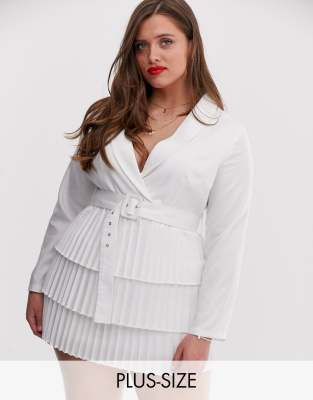 In The Style Plus plunge front blazer dress with pleated skirt in white Very well made.