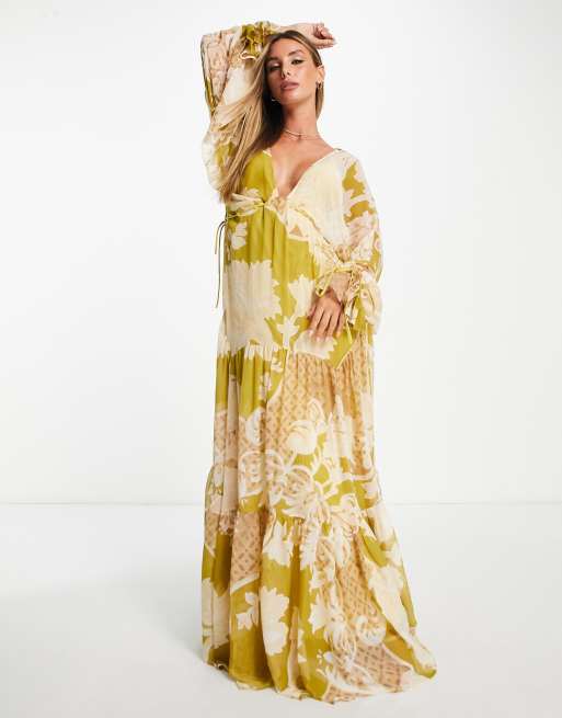 ASOS DESIGN Curve chiffon button through smock maxi dress in mixed print Very well made.
