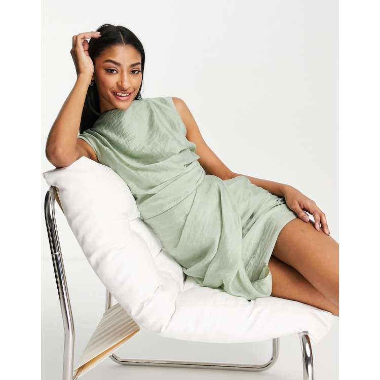 ASOS DESIGN drape mini dress with wrap skirt in textured fabric in sage Very well made.