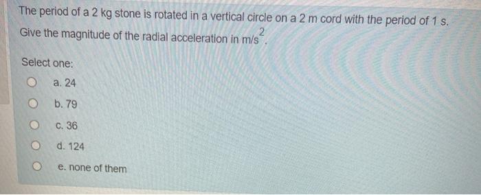 Solved The period of a 2 kg stone is rotated in a vertical Chegg Very well made.